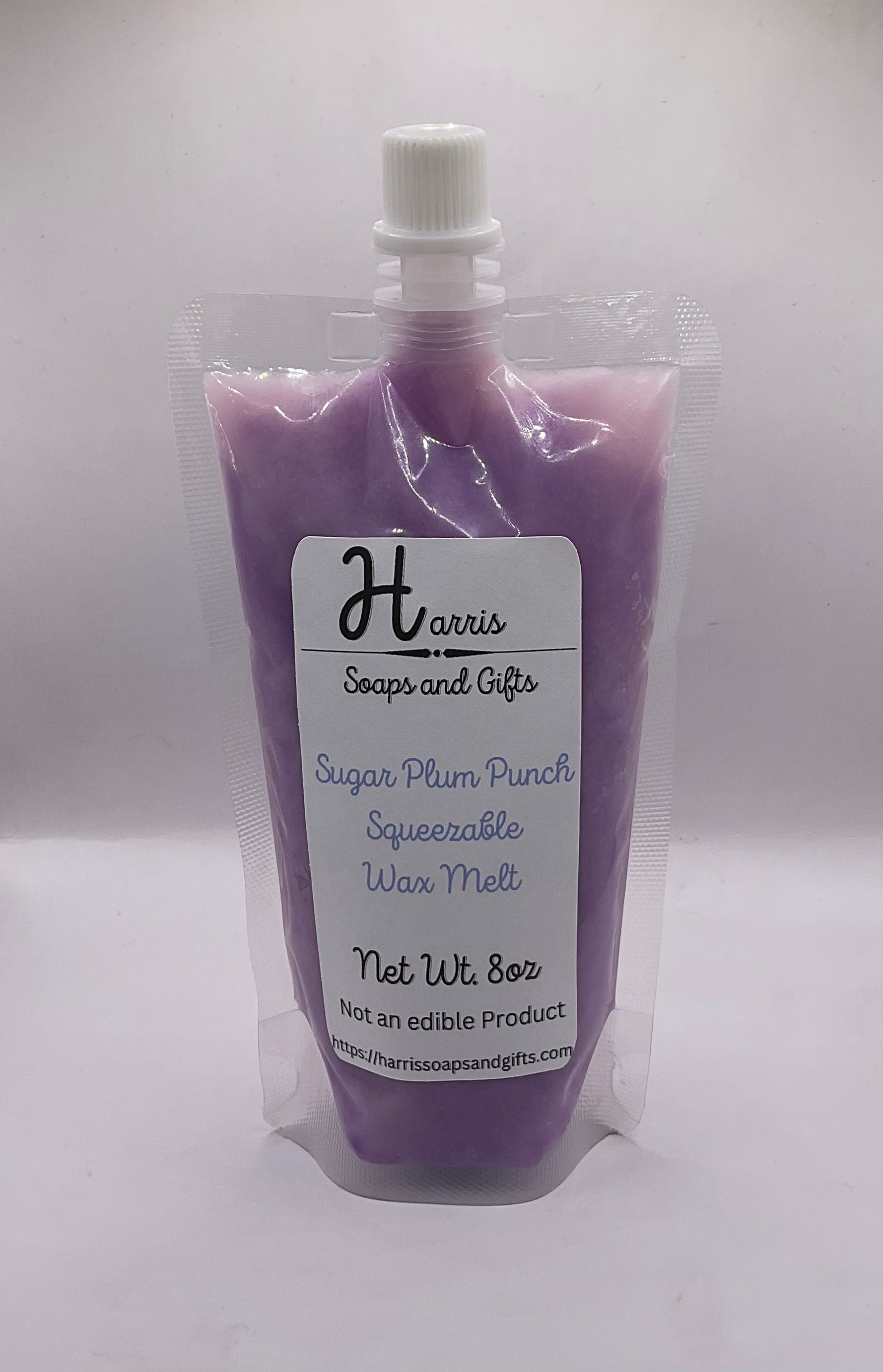 8oz Sugar Plum Punch Squeezable Wax Melt, Made with 100% Soy wax, Vegetable oil, and Sugar Plum Punch Fragrance oil, and Mica powder for color.